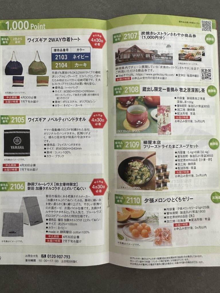 優待って“おまけ感”があるものも多いですが、ヤマハ発動機はちゃんと満足度を意識している印象です。